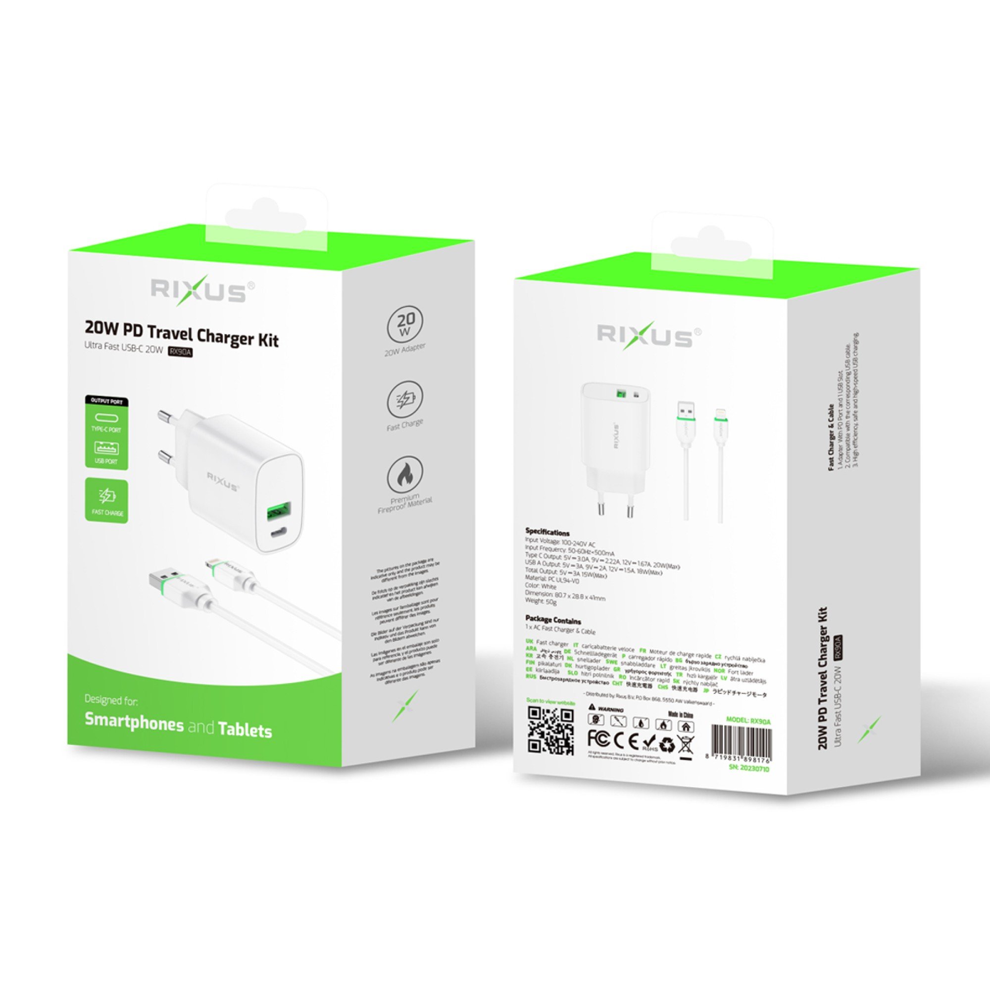 Snabbladdning USB och TYP-C med kabel  20W